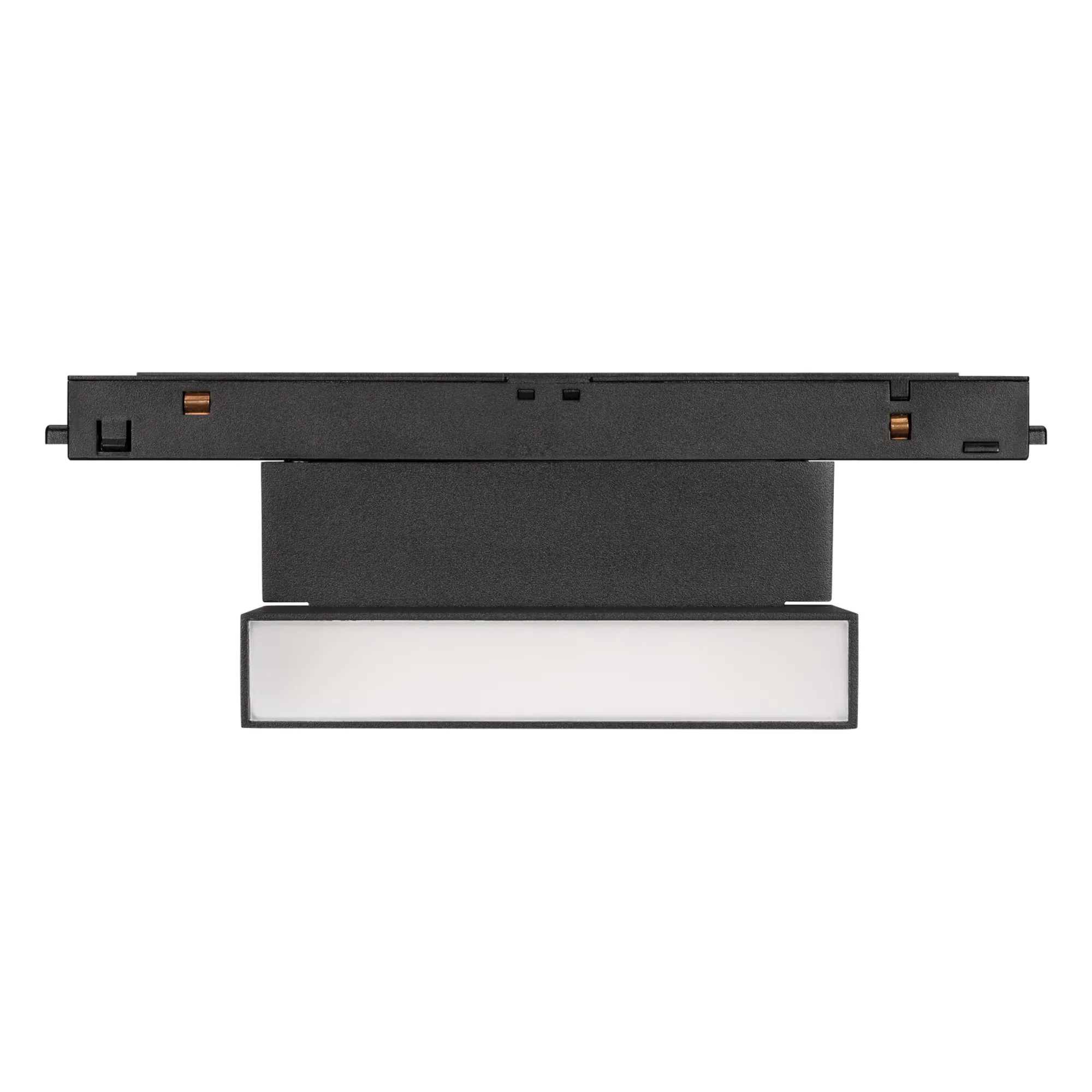 Светильник для магнитных треков MAG-ORIENT шириной 26 мм. Мощность 6 Вт, св. поток 370 лм, 60 лм/Вт, теплый 3000 K, CRI>90, угол 80°, напряжение питания 48 В. Черный прямоугольный корпус из металл, экран поликарбонат, степень защиты IP20. Размер: длина 195 мм, ширина 23 мм, высота 107 мм. Монтаж на трек MAG-ORIENT, пульсация <1%.