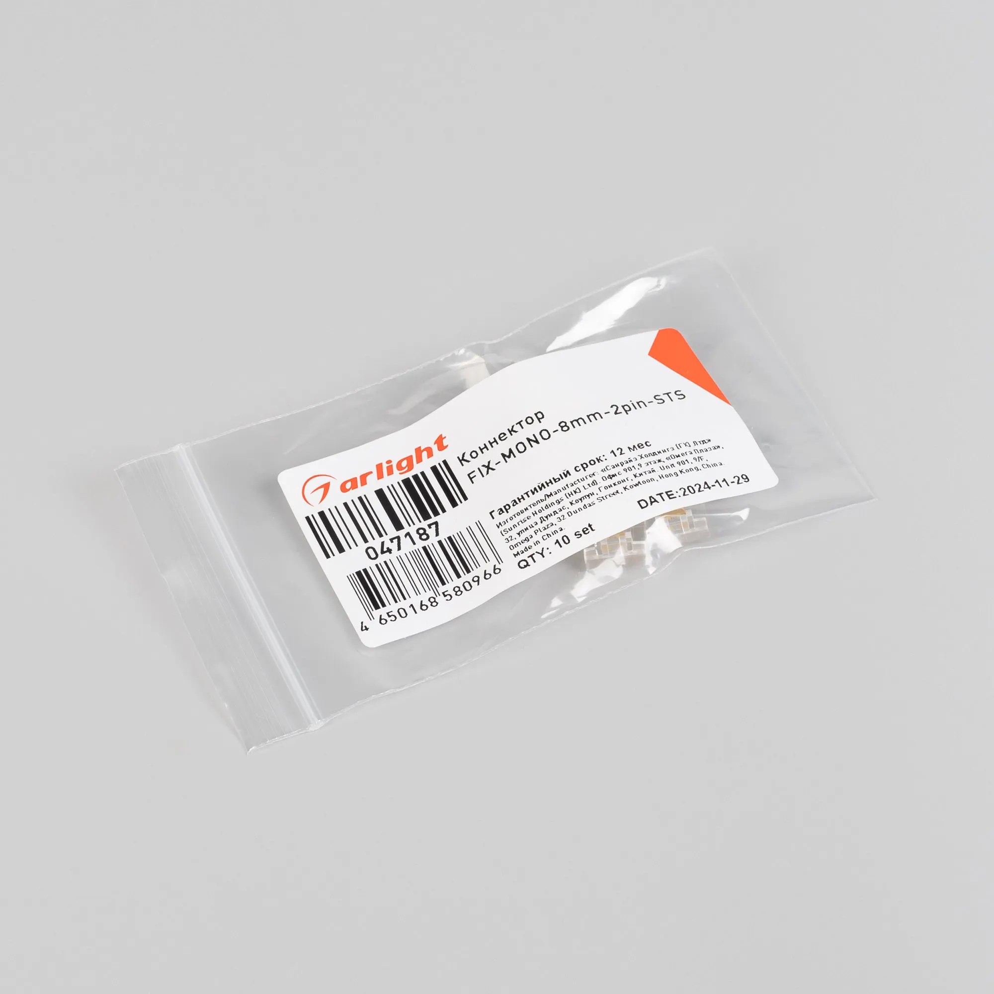 Коннектор FIX-MONO-8mm-2pin-STS (Arlight, Прозрачный)