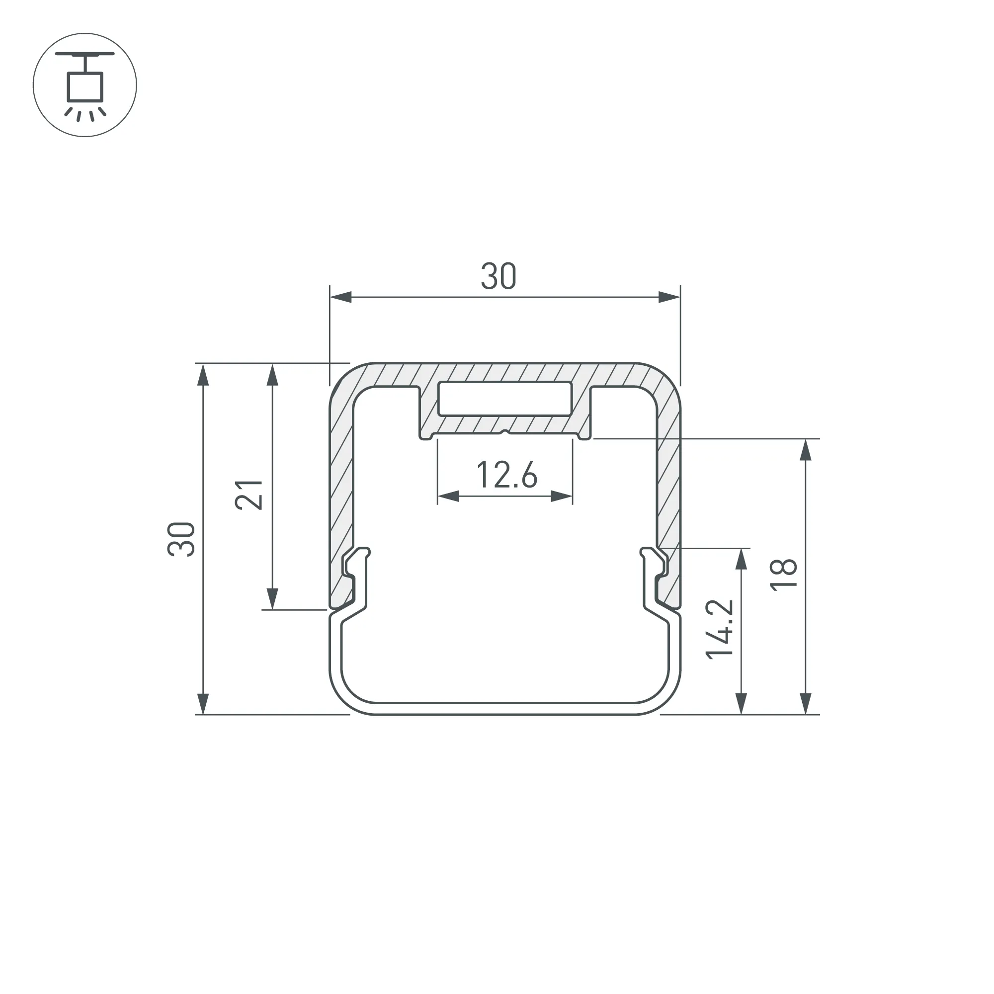 Комплект профиля с экраном и заглушками. Подвесной профиль со скругленными углами и объемным матовыми экраном из поликарбоната идеально подходит для основного освещения и создания дизайнерских светильников. Цвет - серо-оливковый. Габаритные размеры (L×W×H): 2000x30x30 мм. Ширина площадки для ленты 12,6 мм. Аксессуары приобретаются дополнительно.